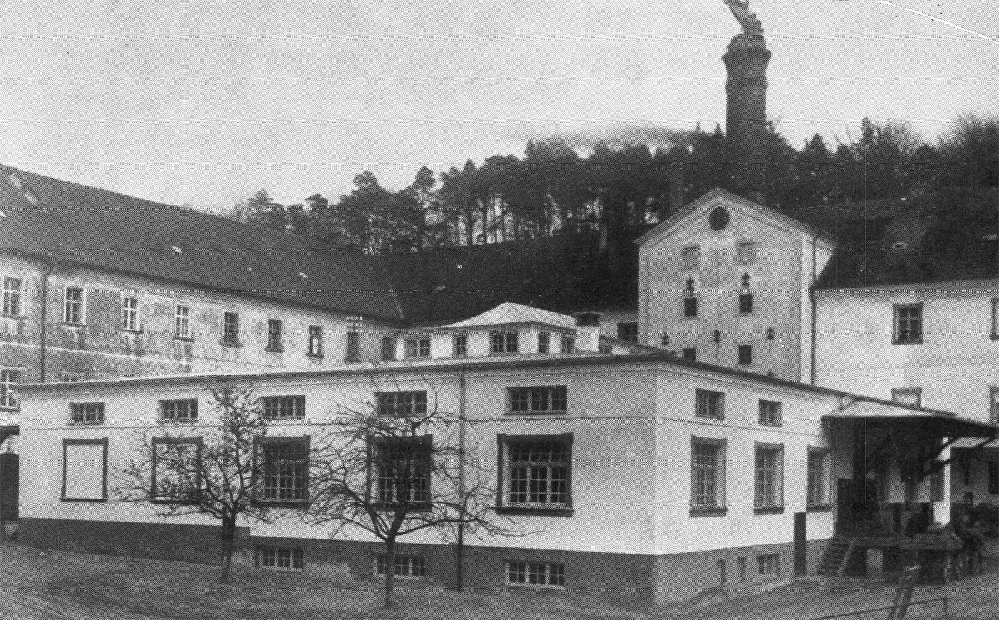 Johann Nepomuk Liebl hatte also die Leitung des gesamten freiherrlichen Besitzes übertragen erhalten, und Braumeister war seit 1894 Max Hausl aus Fürstenzell. Wohl beraten von der wirtschaftlichen Voraussicht und der geschulten technischen Einsicht dieser beiden Männer, die sich in ihrer Art aufs trefflichste ergänzten, entschloss sich Freiherr von Aretin schon frühzeitig zur Einführung des allgemeinen maschinellen Betriebs sowie der künst(S. 19)lichen Kühlung aller Kellerabteilungen und sonstiger Bedarfsstellen, was trotz des notwendigen großen Kapitalaufwandes bereits 1897 abgeschlossen war. Das bedeutete aber nur einen Auftakt. Schon wenige Jahre darauf wurde in dem ehemaligen geräumigen Klostergebäude eine neue Mälzerei mit Weichanlage, Tennen und Darre errichtet, worüber die eingestreuten Abbildungen Aufschluss geben. Dass diese Unternehmungslust reiche Früchte trug, beweist nichts deutlicher, als der damit angebahnte Aufschwung der Brauerei, die es bis zu Kriegsbeginn auf rund 24000 Hektoliter Jahresausstoß brachte.