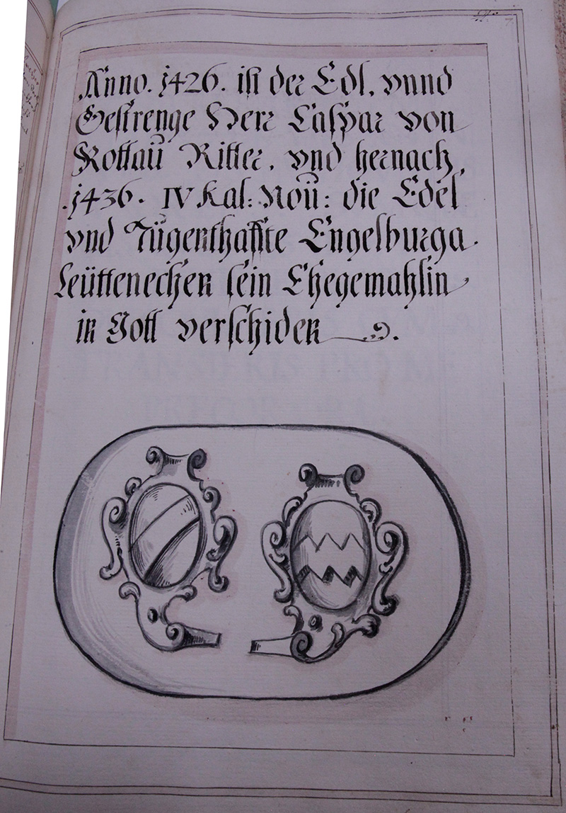 Carl unnd Bernhardt von Rottau haben alhero geschenckht ihr freyes aigen zu Wolfachkürchen, mit allem seinem nuz, zu einem rechten Seelgrath, zu gedenckhen in dem Capitl ihres lieben Vatters Herr Reikhers und Lieben Muetter Frau Gertraud, baider Brüeder. Friderichs und Pilgreinß, zu einem jahrtag, so an unßer frauen Abent ihrer geburt (:in der rakhensat:) Anno .1315.