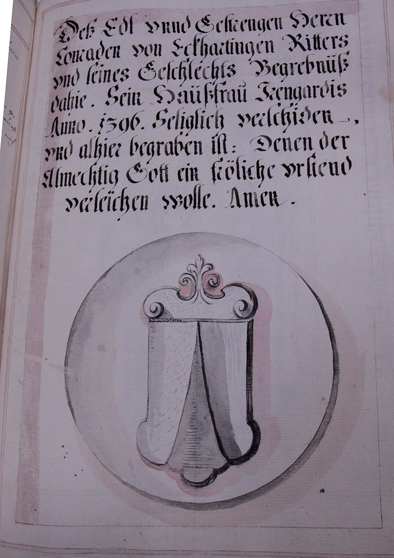 Die Herren von Eckharting sein nach alter Tradition, und alt hergebrachter erkhantnus aus des Closters Alderspach [] Guethättern gewesen, ob zwar nichts absonderlichs von ihnen zufindten, habens sie doch ihr begräbnus alhir erwöhlt, dem gott gnad.