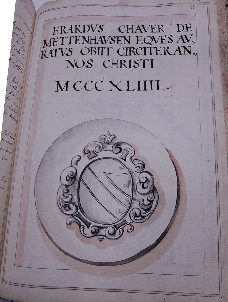Gerhardt Schauer von Mettenhaußen, ritter ist verschiden umb die jahr Christi Anno 1344. hat weegen seiner Frauen seeliger frauen diemuethen, alhero verschafft zu einem ewigen Seelgräth ein schaf Korn auf seinem aignen hof Pärtelsperg anno 1330.
