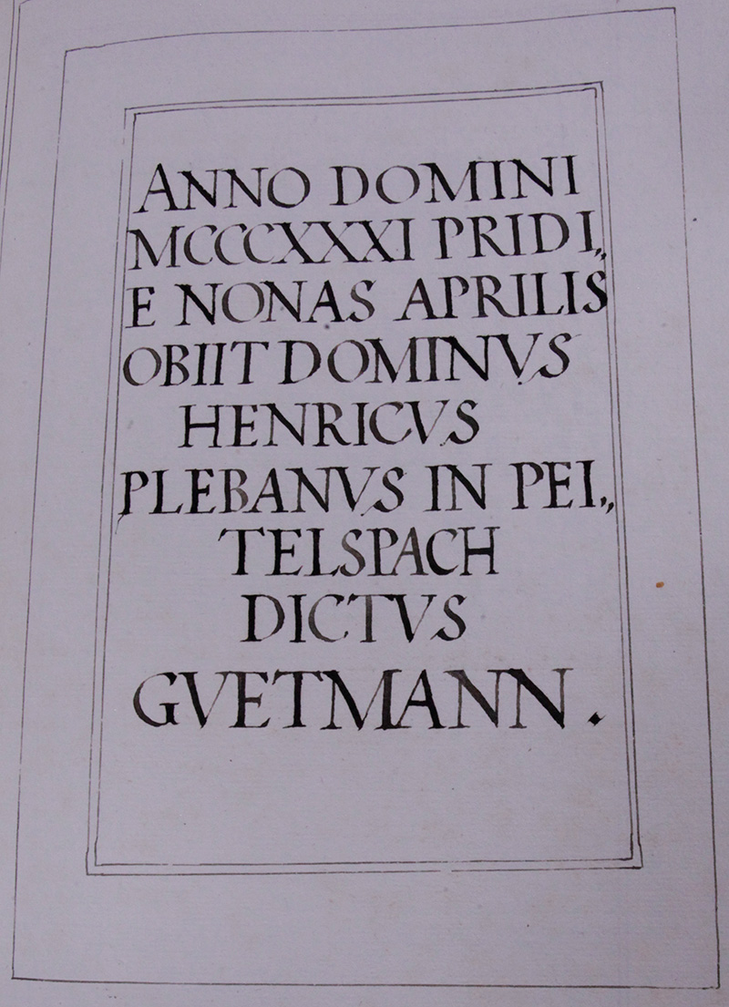 Ist ihm jahr .1331. den .4. April verschiden Herr Hainrch Seelsorger in Peittlspach genant guettmann.