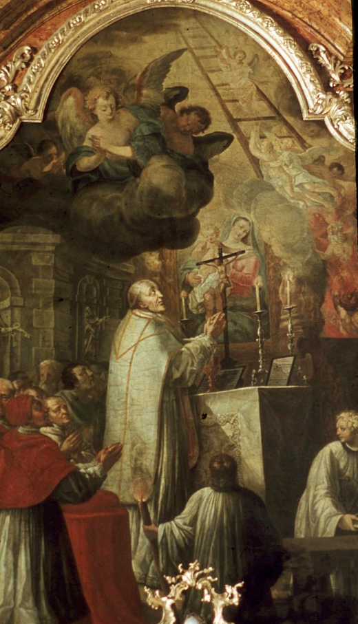 Bernhardaltar (4. Altar rechts) oder auch "Öttinger Altar" genannt, weil dort eine Nachbildung der Altöttinger Muttergottes steht. Das große Bild „St. Bernhard schaut während der heiligen Messe in einer Vision die Gottesmutter und die Erlösung der Armen Seelen aus dem Fegfeuer“ stammt wieder von Andreas Math aus Vilshofen. Das Oberbild zeigt den hl. Sebastian, den Krankenpatron. Daneben sieht man einen kostbaren Gedenkstein für den kunstsinnigen Abt Theobald I. Grad (reg. 1705-1734), den Erbauer der Kirche. Die Inschrift, die seine Verdienste rühmt, wird umrahmt von einer Sanduhr, einem Pelikan, der mit seinem Blut die Brut ernährt (Sinnbild für die hinopfernde Liebe), von einem Phönix, dem sagenhaften Vogel Ägyptens, der sich selbst verbrennt, um verjüngt aus der Asche sich zu erheben (Sinnbild der Unsterblichkeit), einer Sonnenuhr, einem Strauß mit einem Hufeisen im Schnabel (Sinnbild der alles ertragenden Liebe), von dem Spruch: „PER DURA LABORIS" (durch harte Arbeit); und endlich von einem der Sonne zufliegenden Vogel, der mit einem „T“ das Wappen Theobalds bildet, und mit dem Motto "Tibi soli" (Dir allein).