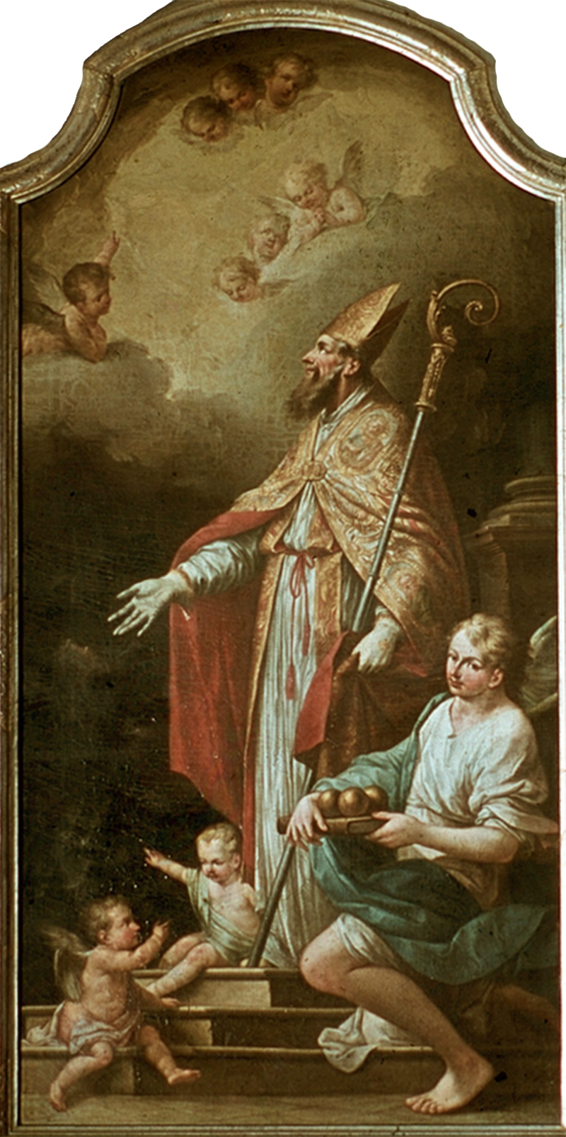 Schutzengelaltar (4. Altar links): Das große Bild mit dem Schutzengel stammt von Nikolaus Stuber. Darüber sehen wir den Schutzpatron gegen die Pest, den heiligen Rochus. Die Pest hatte nach dem 30jährigen Krieg 1649 in Aldersbach 110 Menschen hinweggerafft. Zwischen Reliquien findet sich die Figur des gegeißelten Heilands, wohl eine Nachbildung aus der Wieskirche.