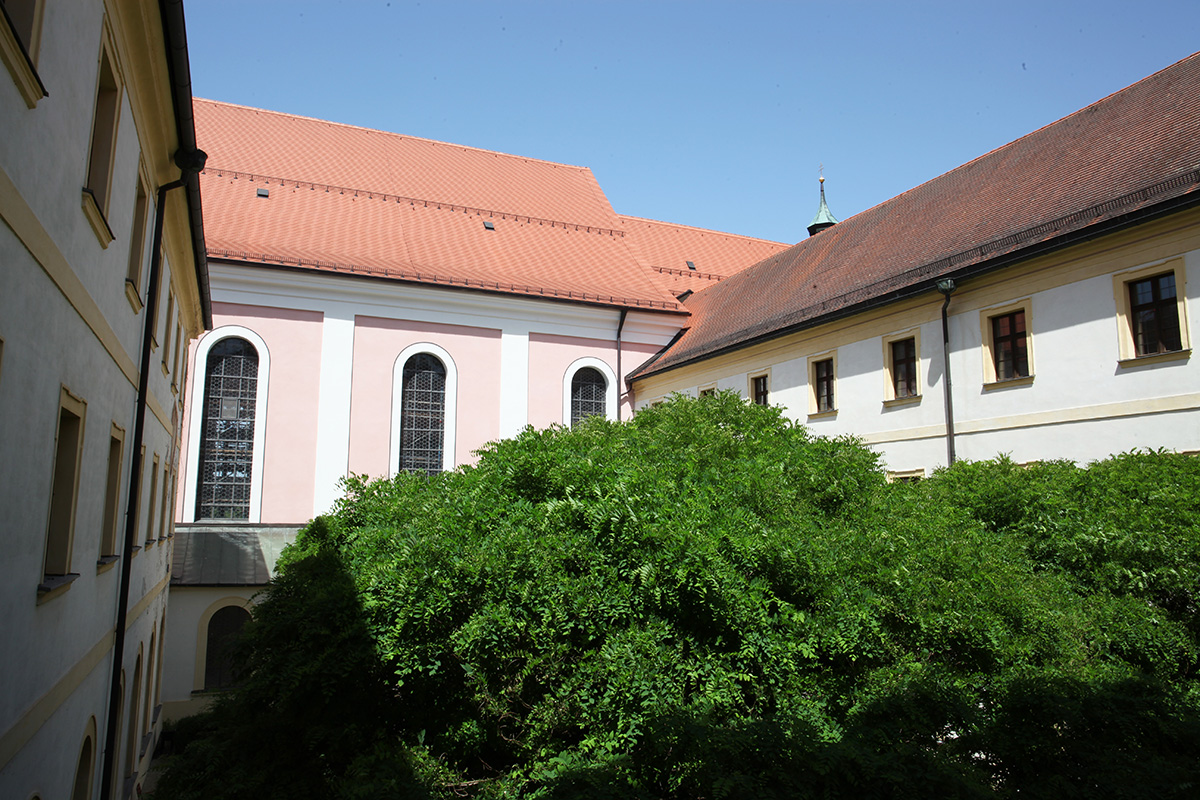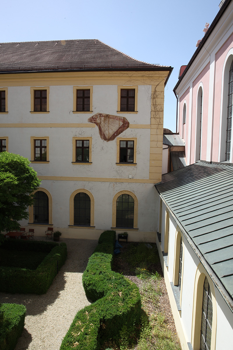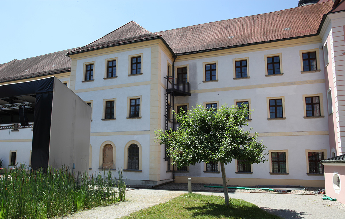 Die Klostergebäude, wie sie heute zu sehen sind, entstanden seit dem Beginn des 18. Jahrhunderts. Die Arbeiten nahmen unter Abt Engelbert Vischer (reg. 1683-1705) mit dem Bau des Südosttraktes (Dormitorium) ihren Anfang. Abt Theobald I. Grad (reg. 1705-34) erbaute den Osttrakt mit Kapitelhaus, Sakristei, Winterchor und weiteren Mönchszellen, ließ von ca. 1718-1720 die Klosterkirche und in den folgenden Jahren die Abtei (heute Pfarrhof) und den Westflügel (Gästehaus mit Sälen, darunter der neue Weinkeller) neu erbauen. Auch der Südtrakt mit Refektorium und "neuer" Bibliothek ist das Werk dieses Abtes. Seinem Nachfolger Abt Paulus Genzger (reg. 1734-45) oblag es, verschiedene Wirtschaftsbauten (Brauhaus, Stampf- und Sägemühle, Pfisterei, Kastnerei und Gerberei) in den Jahren 1734-1736 neu erbauen oder instandsetzen zu lassen (u.a. mit dem Baumeister Joseph Wolf von Stadtamhof). Die Ausstattung der Prälatur und der Fest- und Speisesäle mit Fresken und Stuckaturen, der Klosterkirche mit weiteren Einrichtungsgegenständen (u.a. Kanzel, Chorgestühl und Orgel) sowie die Neugestaltung der Westfassade der Kirche und des Turms erfolgten unter Theobald II. (1745-79). Reitwinkler ließ um 1760 zudem die Bibliothek mit einem neuen Schrankwerk und Freskomalerei ausstatten.