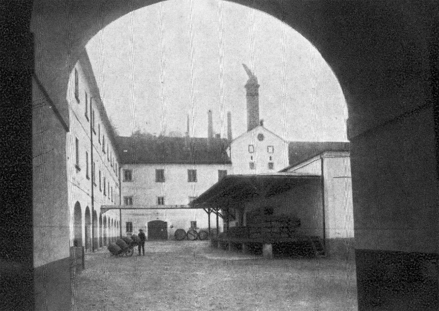 Johann Nepomuk Liebl hatte also die Leitung des gesamten freiherrlichen Besitzes übertragen erhalten, und Braumeister war seit 1894 Max Hausl aus Fürstenzell. Wohl beraten von der wirtschaftlichen Voraussicht und der geschulten technischen Einsicht dieser beiden Männer, die sich in ihrer Art aufs trefflichste ergänzten, entschloss sich Freiherr von Aretin schon frühzeitig zur Einführung des allgemeinen maschinellen Betriebs sowie der künst(S. 19)lichen Kühlung aller Kellerabteilungen und sonstiger Bedarfsstellen, was trotz des notwendigen großen Kapitalaufwandes bereits 1897 abgeschlossen war. Das bedeutete aber nur einen Auftakt. Schon wenige Jahre darauf wurde in dem ehemaligen geräumigen Klostergebäude eine neue Mälzerei mit Weichanlage, Tennen und Darre errichtet, worüber die eingestreuten Abbildungen Aufschluss geben. Dass diese Unternehmungslust reiche Früchte trug, beweist nichts deutlicher, als der damit angebahnte Aufschwung der Brauerei, die es bis zu Kriegsbeginn auf rund 24000 Hektoliter Jahresausstoß brachte.
