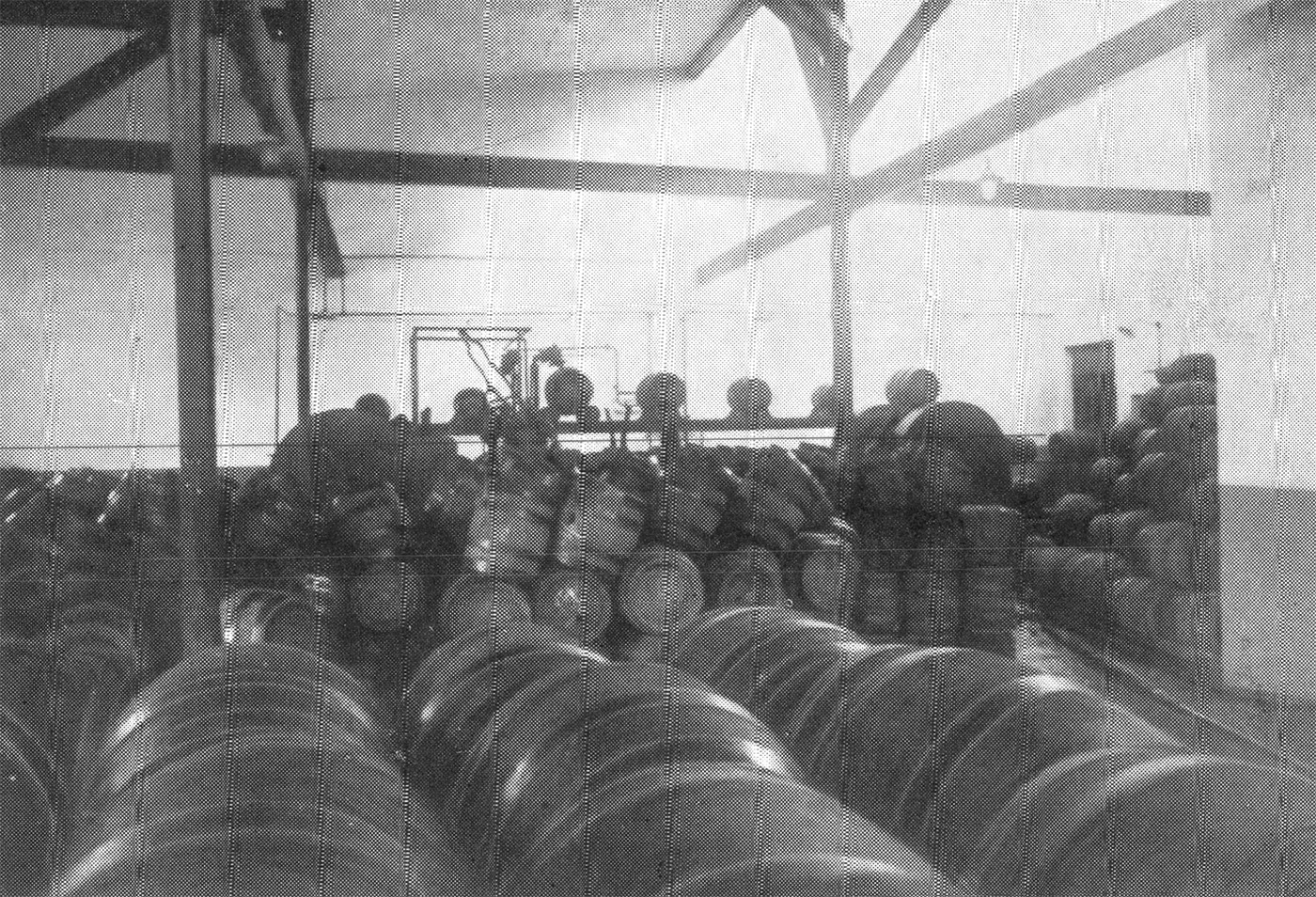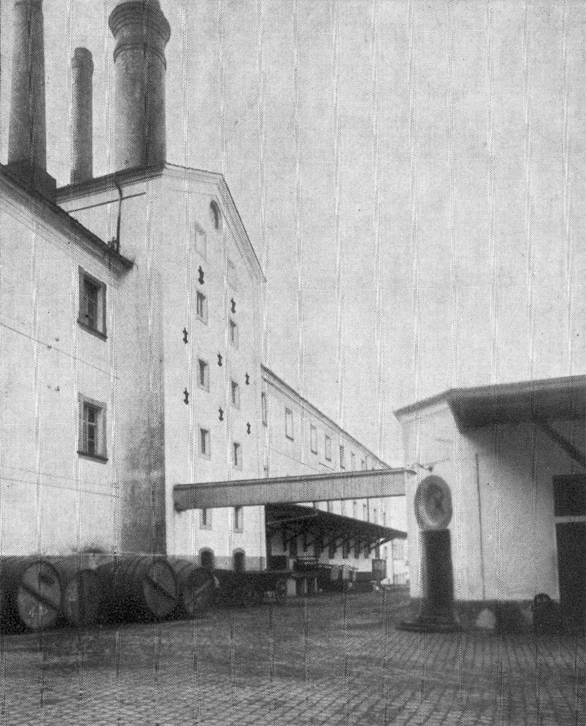 Besonders eindrucksvoll ist die mächtige Malz-Siloanlage. In sechs eisernen Silos werden 5000 Zentner fertiges Malz gelagert. Ohne jede Handarbeit wandert aus diesen Silos das Malz zum Elevator, zur Poliermaschine, zur Schrotmühle und schließlich zum Sudhaus.