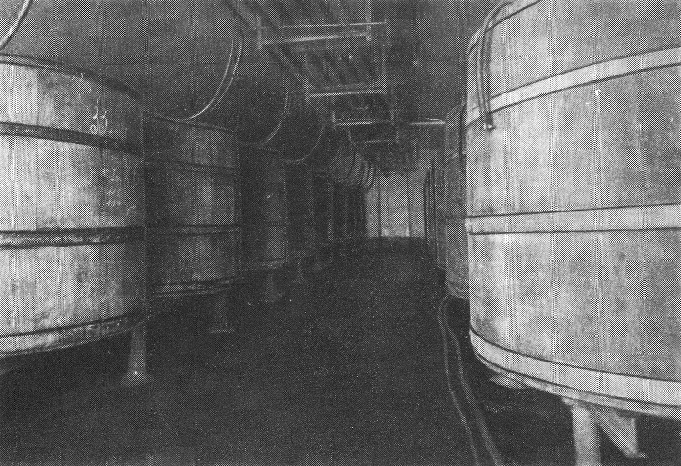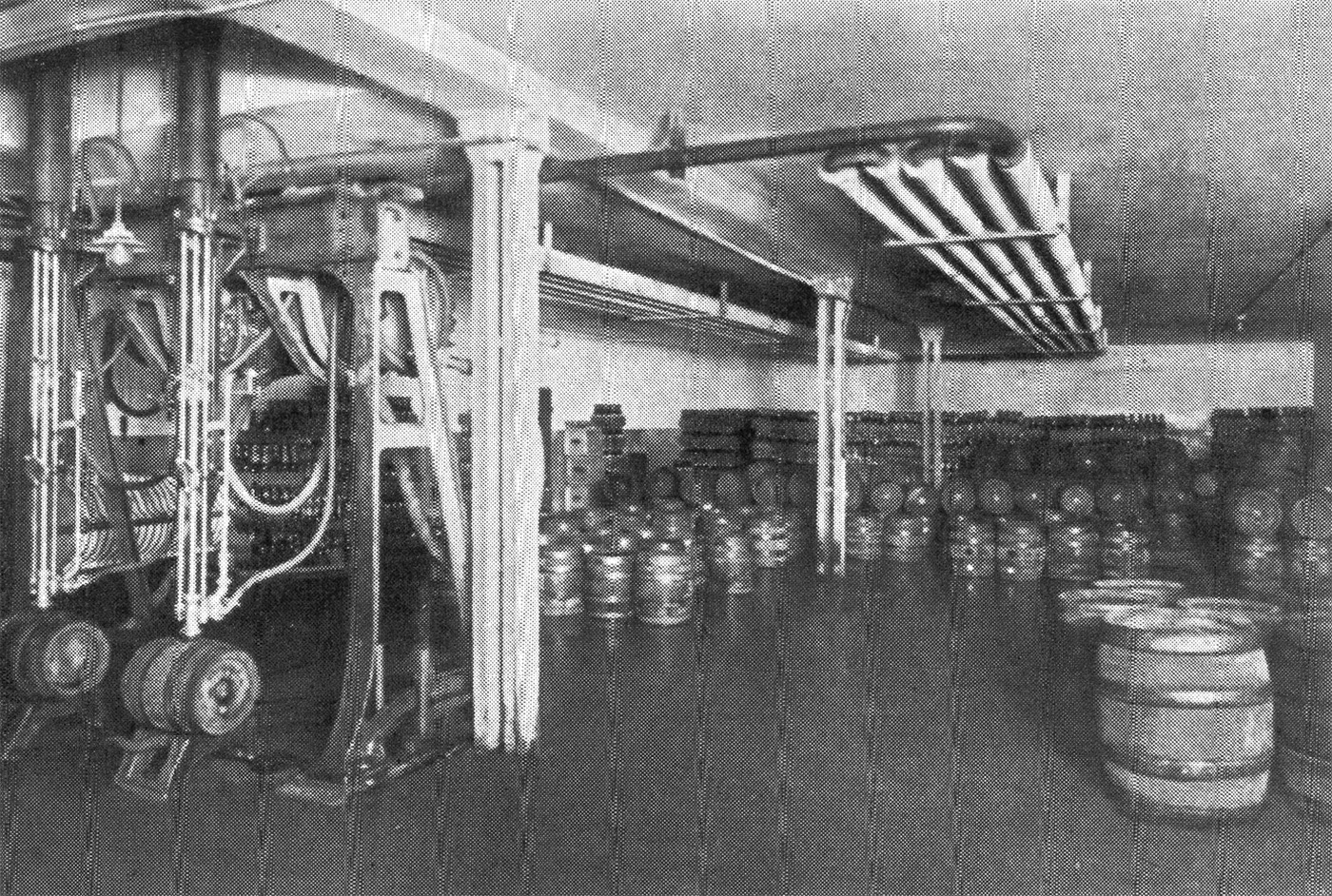 Und nun zu den Kellern! Der Gärkeller hat zwei Abteilungen mit zusammen 1500 Hektolitern Fassungsraum. Die Holzbottiche haben Patentabseiher und stehen auf gusseisernen Füßen und Schienen, was höchste Sauberkeit verbürgt. Vom Gärkeller wird das Bier mittels Druckregler auf die Fässer im Lagerkeller gepumpt. Dieser besteht aus den alten Klosterkellern mit 3000 Hektoliter Fassungsvermögen und aus den neuen Kelleranlagen, die, tief in den Schlossberg sich eingrabend, zusammen 8000 Hektoliter bergen. Eine dieser Kellerabteilungen fasst nicht weniger als 60 übereinander geschichtete riesige Lagerfässer.