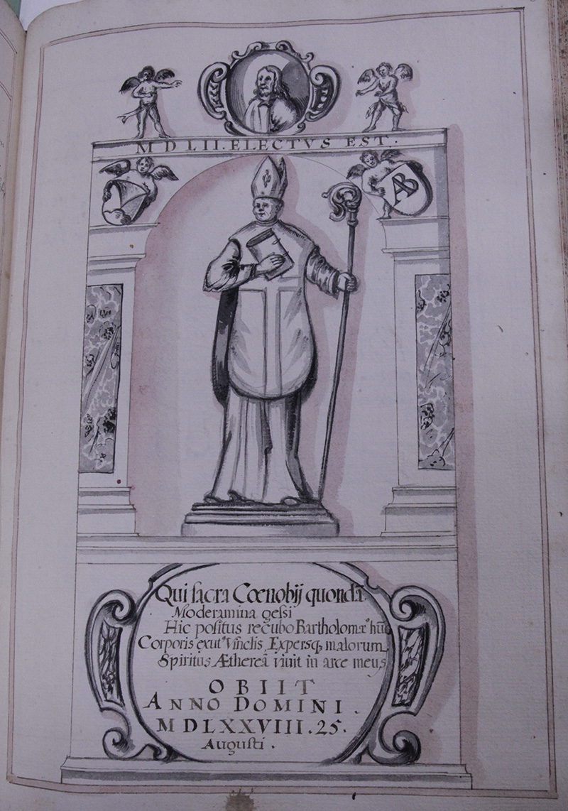Herr Bartholomaus auß dem Rottal Münster gebürtig in Mathematica sehr gelehrt unnd erfahren wurdte zum Abbten fürgesezt den .11. Julii in Jahr 1552. Alß Herr Lorenz von Fürstenzell an statt deß Herrn Visitatoris Praesidirete mit Herrn Andrea Abbten zu Sanct Veith, Endet sein Regiment in dem 25. jahr. den .25. Augusti Anno 1578 Sein Grabschrifft Lauttet also Der ich zur Zeit das Gott geweichte Closter Regiert Bartholomaeus, lige alhie in die Erden gelegt; mein Geist erlediget von den Bandten deß Leibs unnd vil ubels enthebt lebet in dem himlischen Reich.