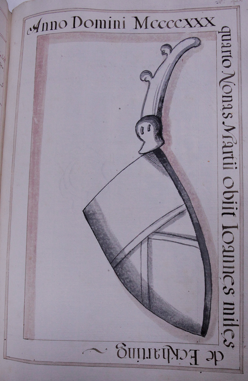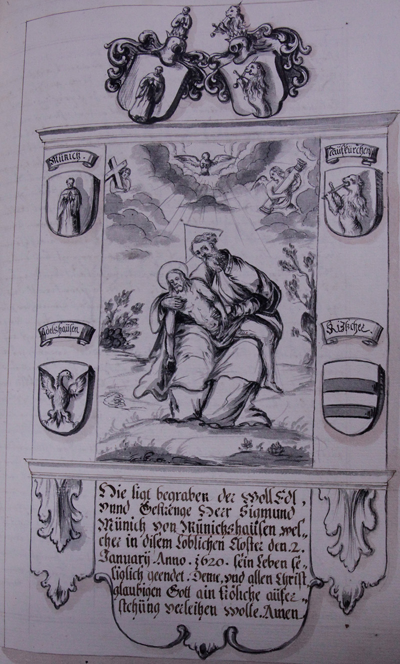 Im Jahr .1376. ist verschiden der Edle mann unnd streittbare Soldat Hainrich Tuschl von Seldenau. welcher unnser Closter freygebig begabt hat.