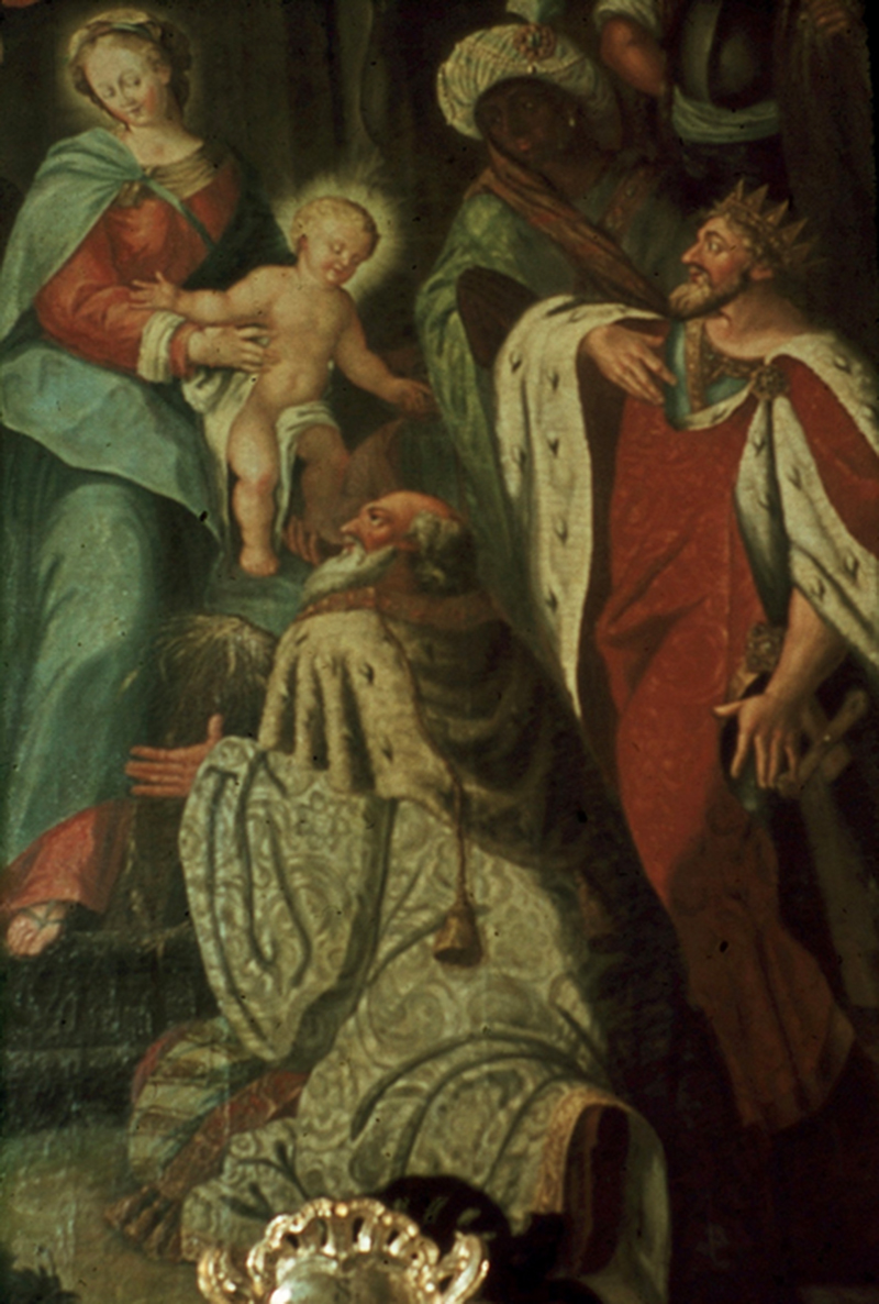 Dreikönigsaltar (3. Altar rechts): Das Altarbild „Anbetung Jesu durch die Heiligen Drei Könige“ stammt von dem Vilshofener Maler Andreas Math. Das Oberbild zeigt den hl. Antonius von Padua. Auf dem Altar die Reliquien des 9jährigen römischen Märtyrers Valerius. Diese Reliquien erhielt das Kloster Aldersbach im Jahr 1746 zu seinem 600jährigen Jubiläum von Rom als Geschenk. Der Knabe hält in der rechten Hand die Siegespalme und in der linken einen Glasbehälter mit seinem Blut. Der Marmorstein mit Inschrift im Hintergrund stammt aus den römischen Katakomben. Neben dem Altar ist das Grabmal des Abtes Theobald II. (reg. 1745-1779) positioniert. Sein Wappen ist die Taube mit dem Ölzweig.