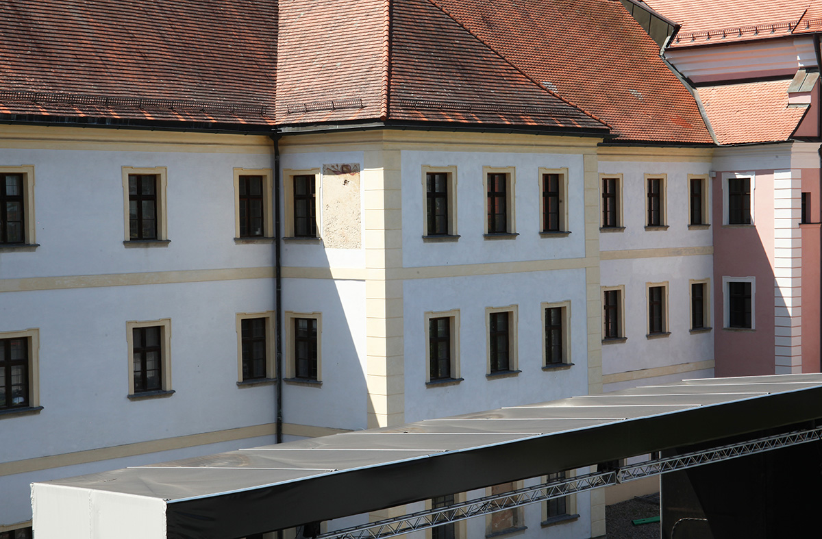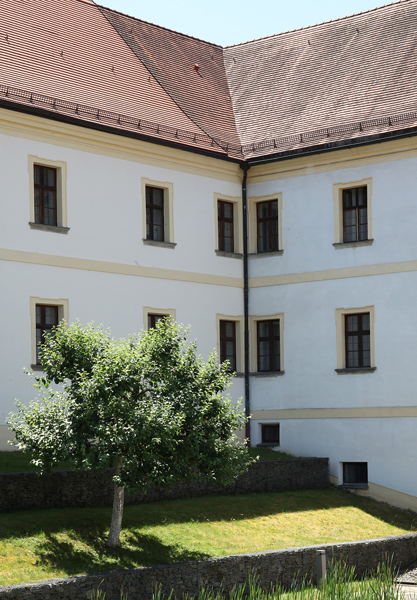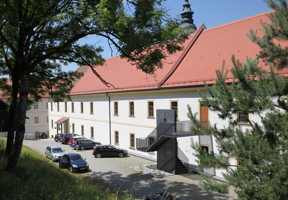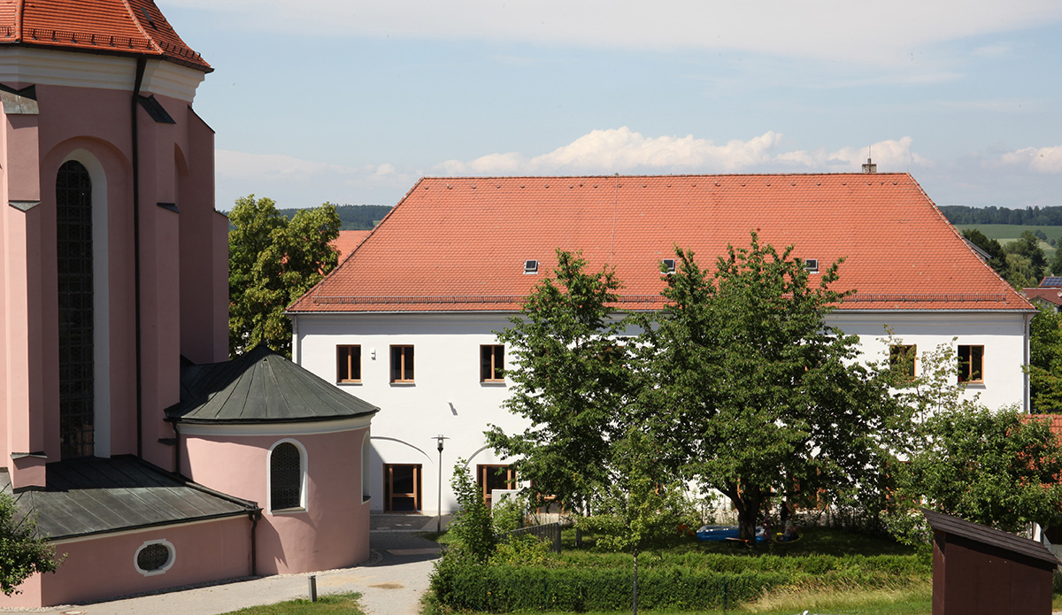 Die Klostergebäude, wie sie heute zu sehen sind, entstanden seit dem Beginn des 18. Jahrhunderts. Die Arbeiten nahmen unter Abt Engelbert Vischer (reg. 1683-1705) mit dem Bau des Südosttraktes (Dormitorium) ihren Anfang. Abt Theobald I. Grad (reg. 1705-34) erbaute den Osttrakt mit Kapitelhaus, Sakristei, Winterchor und weiteren Mönchszellen, ließ von ca. 1718-1720 die Klosterkirche und in den folgenden Jahren die Abtei (heute Pfarrhof) und den Westflügel (Gästehaus mit Sälen, darunter der neue Weinkeller) neu erbauen. Auch der Südtrakt mit Refektorium und "neuer" Bibliothek ist das Werk dieses Abtes. Seinem Nachfolger Abt Paulus Genzger (reg. 1734-45) oblag es, verschiedene Wirtschaftsbauten (Brauhaus, Stampf- und Sägemühle, Pfisterei, Kastnerei und Gerberei) in den Jahren 1734-1736 neu erbauen oder instandsetzen zu lassen (u.a. mit dem Baumeister Joseph Wolf von Stadtamhof). Die Ausstattung der Prälatur und der Fest- und Speisesäle mit Fresken und Stuckaturen, der Klosterkirche mit weiteren Einrichtungsgegenständen (u.a. Kanzel, Chorgestühl und Orgel) sowie die Neugestaltung der Westfassade der Kirche und des Turms erfolgten unter Theobald II. (1745-79). Reitwinkler ließ um 1760 zudem die Bibliothek mit einem neuen Schrankwerk und Freskomalerei ausstatten.