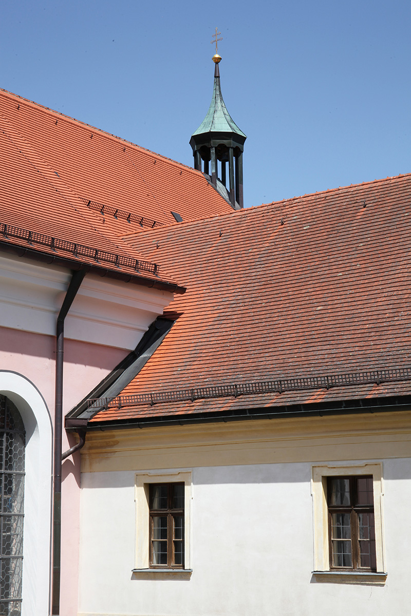 Die Klostergebäude liegen an der Südseite der Kirche um einen rechteckigen Kreuzgang. An der Südecke des Ostflügels springt gegen Osten ein langer Trakt vor, an den Westflügel schließt sich nördlich, über die Kirchenfassade vorspringend, die Abtei an, südlich die Brauerei. Sämtliche Trakte sind dreigeschossig, in der Fassadenbildung gleichmäßig behandelt. Die Gliederung beschränkt sich auf einfache Fensterumrahmung mit Ohren und Geschossbänder. Der Westflügel des Konventes und der Abteitrakt haben im Erdgeschoss offene rundbogige Arkadengänge gegen den äußeren Klosterhof zu.