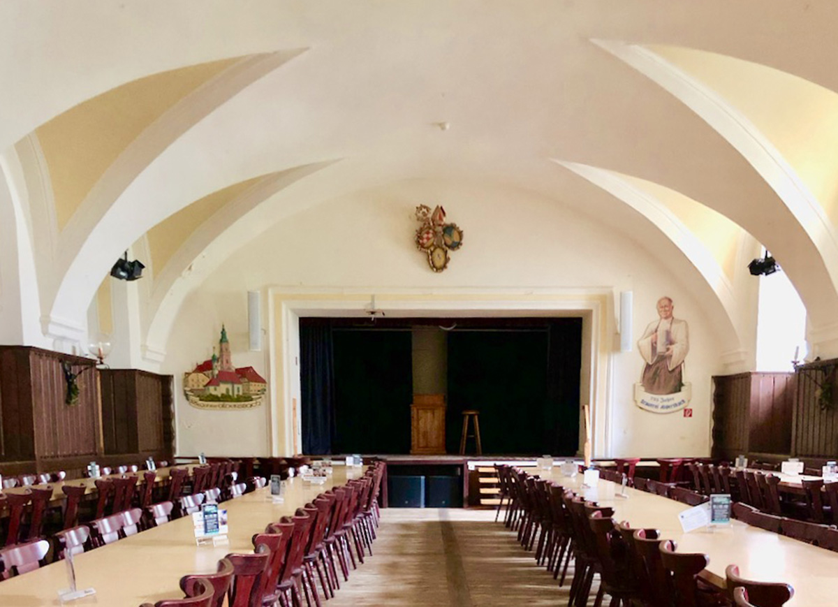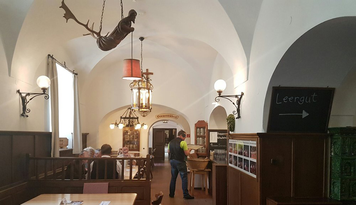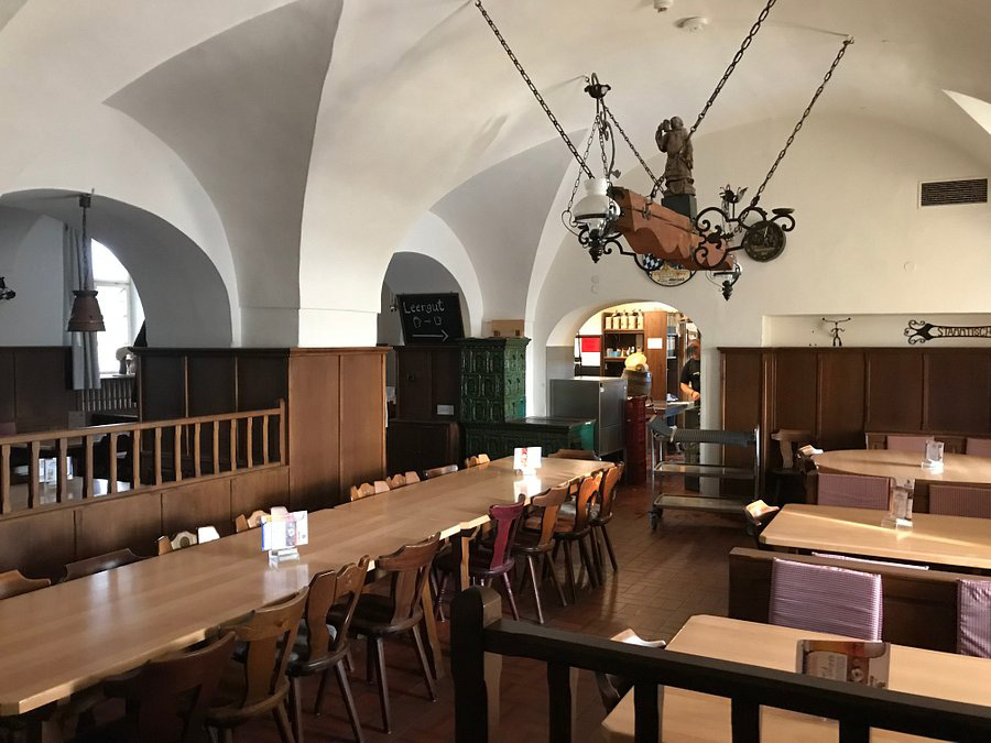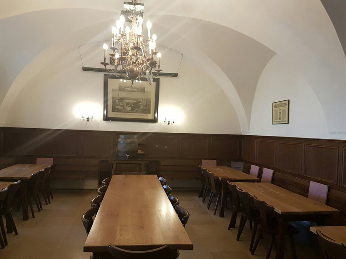 Das Refektorium befindet sich im Erdgeschoss des Südflügels. Die Gemälde am Tonnengewölbe "Speisung der Fünftausend " und "Christus mit der Samariterin am Jakobsbrunnen " sind übertüncht. Der Raum wird heute als Festsaal des Bräustüberls genutzt. Die Klosterküche befand sich im nördlichen Teil des heutigen Bräustüberls.